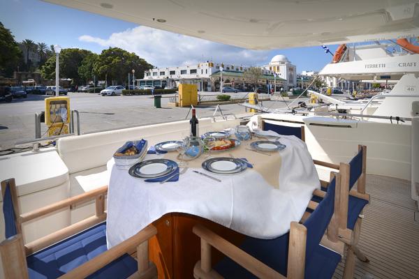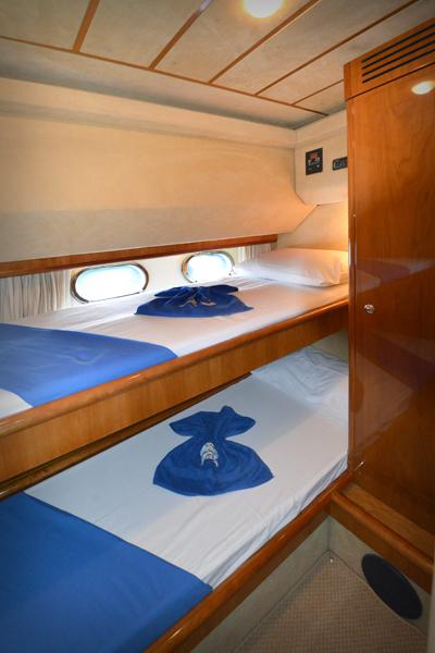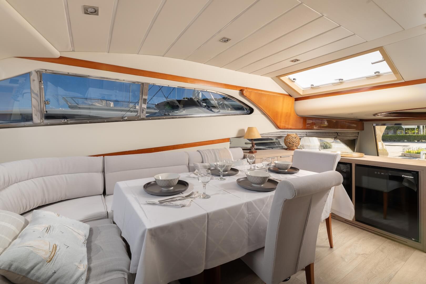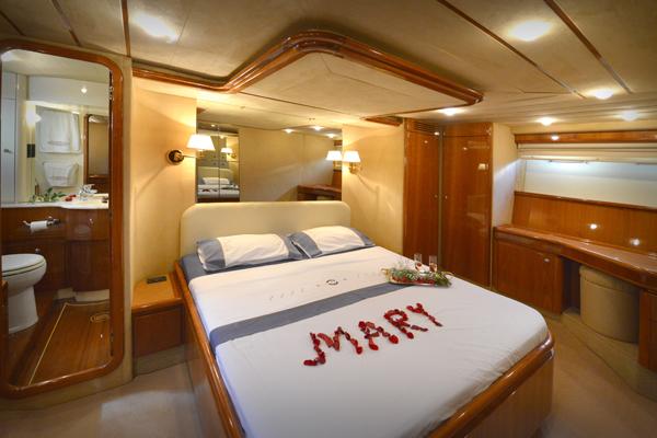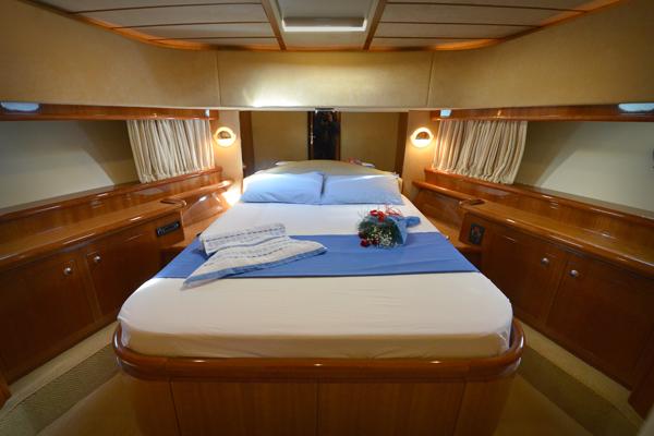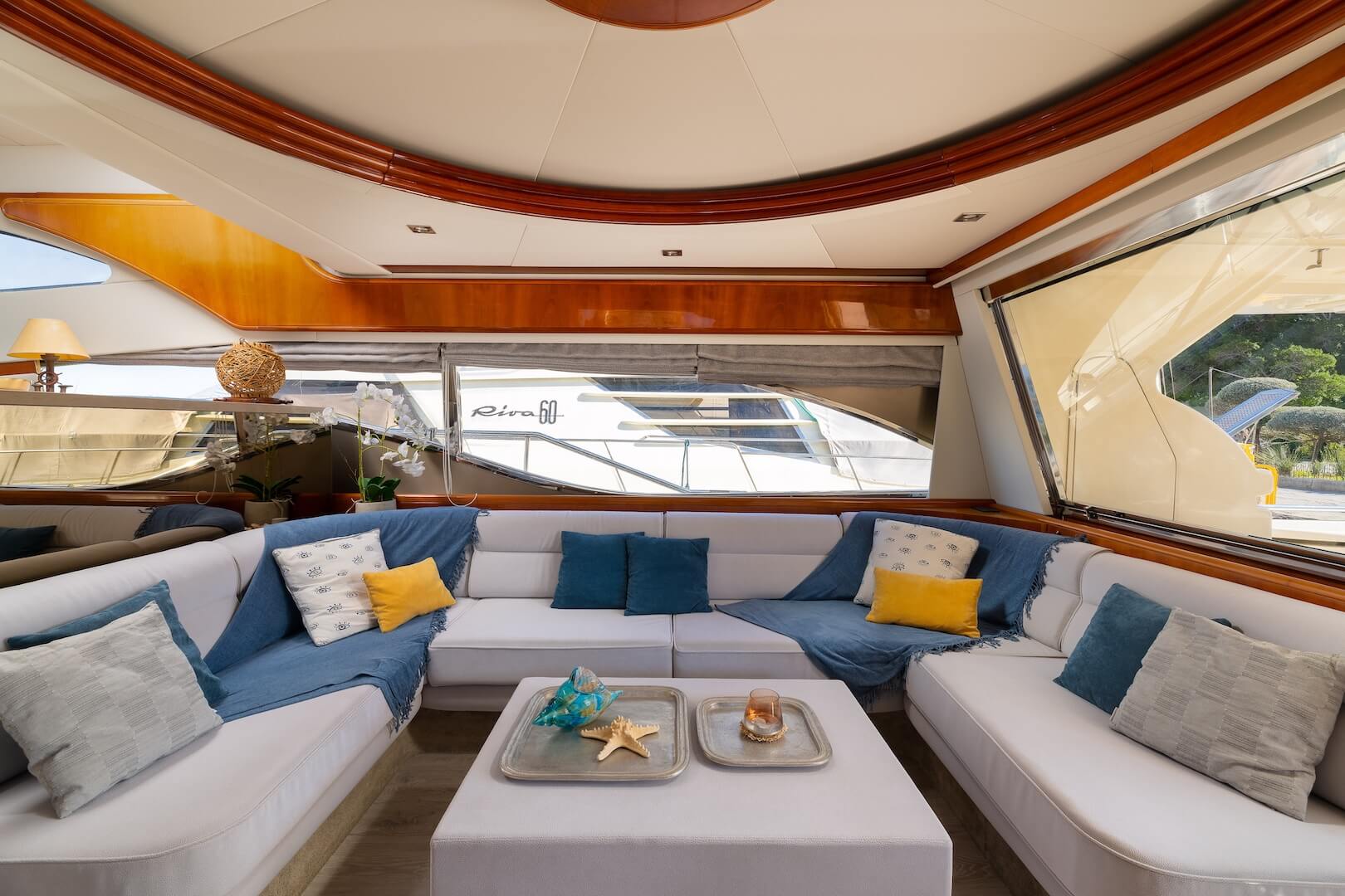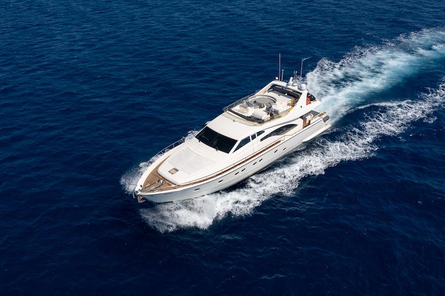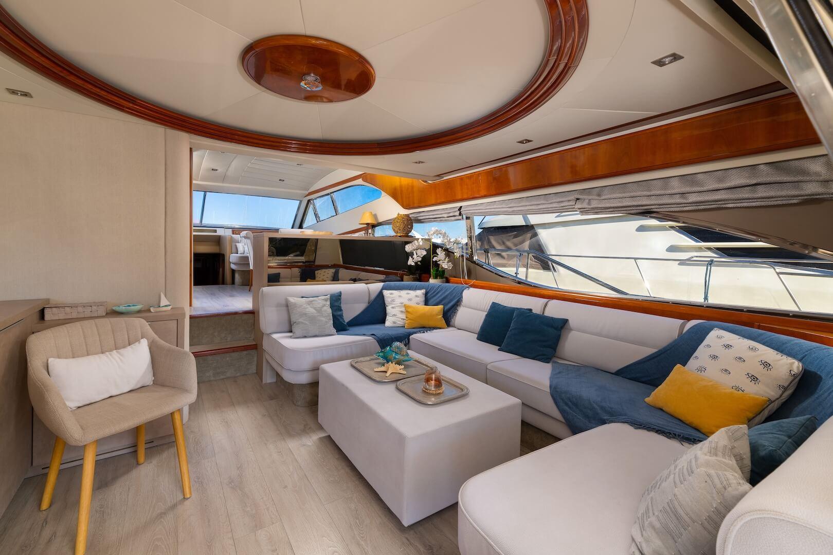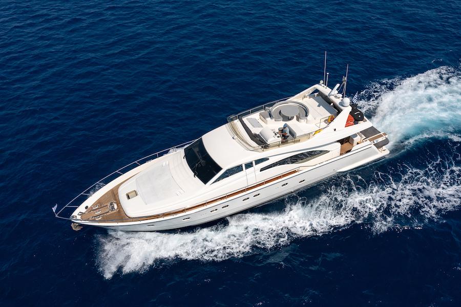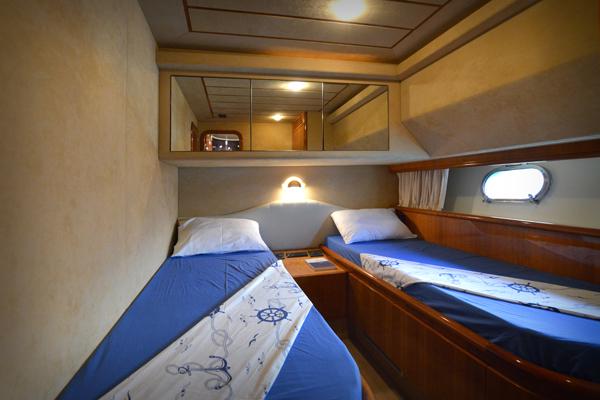 M/Y MARY is a 68ft (20m) Ferretti luxury yacht, fully renovated in 2021. She can accommodate up to 8 passengers in her 4 cabins. A master cabin with a king-size bed, the VIP cabin also with a double bed, a cabin with 2 single beds that can be converted into a king-size bed and a cabin with 2 bunk beds are ready to accommodate you. The cabins have stereo, radio, USB, Bluetooth and independent air conditioning in each room.